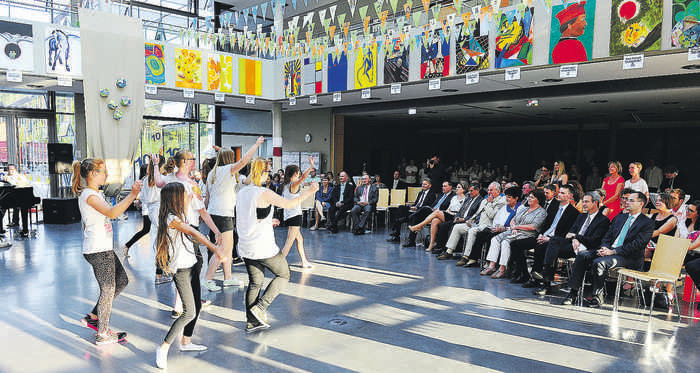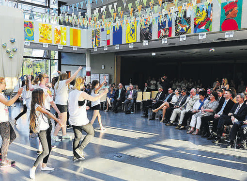 Das i-Tüpfelchen setzte der Lehrerchor mit dem WM-Hit „Auf uns“, als er dessen Text auf die Schule ummünzte. Nach dem offiziellen Teil hatten die Gäste noch reichlich Gelegenheit zu einem Gedankenaustausch bei einem Sektempfang mit Leckerbissen vom kalten Buffet.