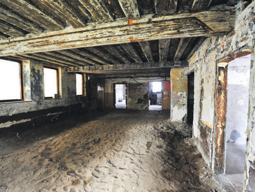Das war früher der Gastraum. Gut zu erkennen ist die alte Holzdecke aus Fichte. Von der historischen Bausubstanz soll künftig so viel wie möglich sichtbar sein2014/09/88211_gruenerbaumsandboden_New_1409930164.jpg