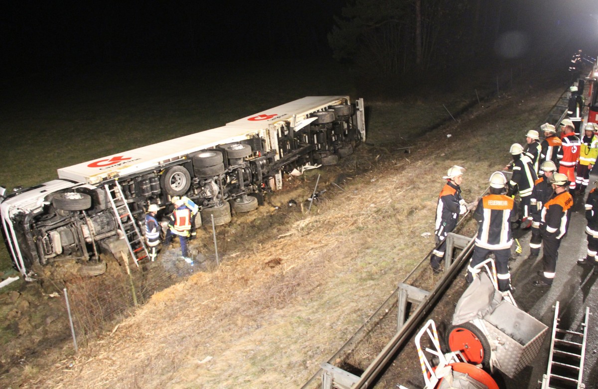 Die Feuerwehren aus Schnaittach, Hormersdorf und Lauf sicherten ab, beleuchteten die Unfallstelle und pumpten den Diesel aus dem Tank, bevor sie die Einsatzstelle an die Autobahnmeisterei übergaben. Der Rettungsdienst brauchte nicht weiter tätig werden. Da nur die rechte Spur gesperrt wurde, gab es keine Behinderungen des fließenden Verkehrs.