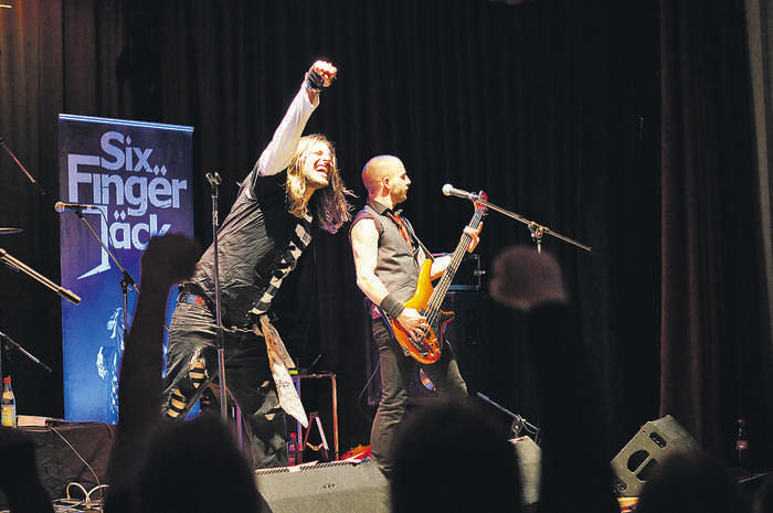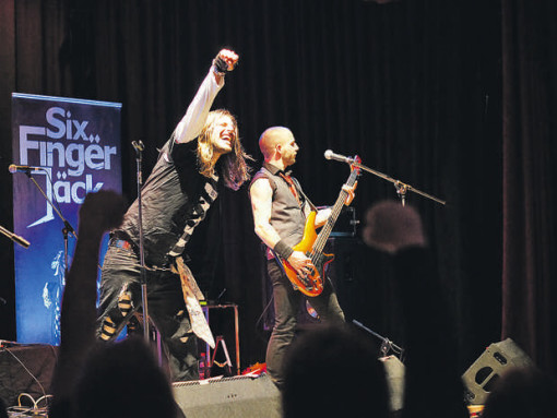 Härtere Töne schlug die Vier-Mann-Band „Six Finger Jack“ an. Sie betrat nach professionellem Intro die Bühne und legte sofort mit schnellen Gitarrenriffs und Headbanging los. Vor allem die jüngeren Zuhörer ließen sich von den charismatischen Musikern mitreißen.
