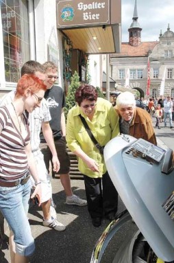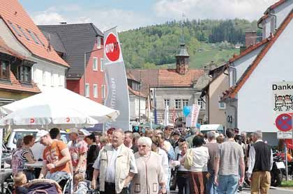 Außer Autos und geöffneten Geschäften gab es Imbissbuden und Informationsstände, im Rathaus erklärte die Künstlerin Kerstin Winter aus St. Helena ihre Bilder.