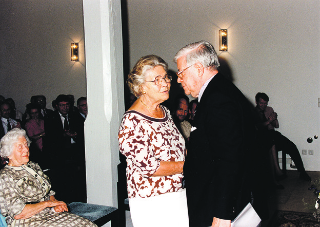 Und noch einen dritten offiziellen Besuch gibt es: 1994, zum 80. Geburtstag von Lucie Kurlbaum-Beyer, sind die Schmidts – Ehefrau Loki ist auch bei offiziellen Anlässen stets dabei – erneut zu Gast im Nürnberger Land. Diesmal findet die Feier in einem kleineren und privateren Rahmen im Schwaiger Schloss statt.