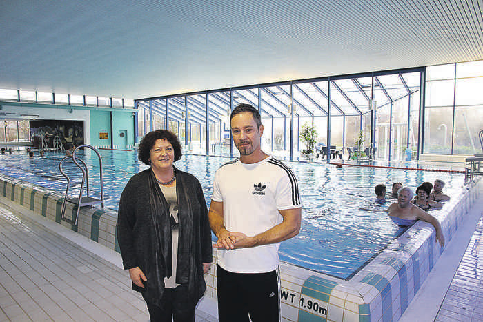 Umso mehr freuen sich die Rathauschefin und der Betriebsleiter Jan Gottschalk, wie gut die Gesundheitsaktionen angenommen werden, die gemeinsam mit der Volkshochschule Unteres Pegnitztal seit Oktober im Schwaiger Bad stattfinden. Jeden Mittwoch und Freitag wird von 9.15 bis 9.45 Uhr „Aqua Fitness“ angeboten, jeden Donnerstag von 19.30 bis 20 Uhr „Aqua Zumba“ mit Musik.