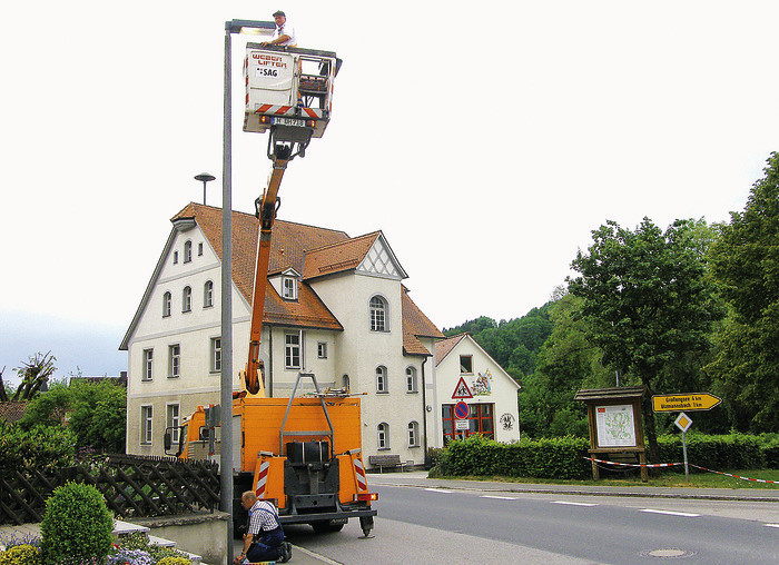 Von den 300 Straßenlaternen des Nürnberger Stromlieferanten in der Gemeinde waren bereits 53 mit Gelblicht ausgestattet, 183 werden gerade umgerüstet und 58 können nicht auf Gelblicht umgestellt werden.