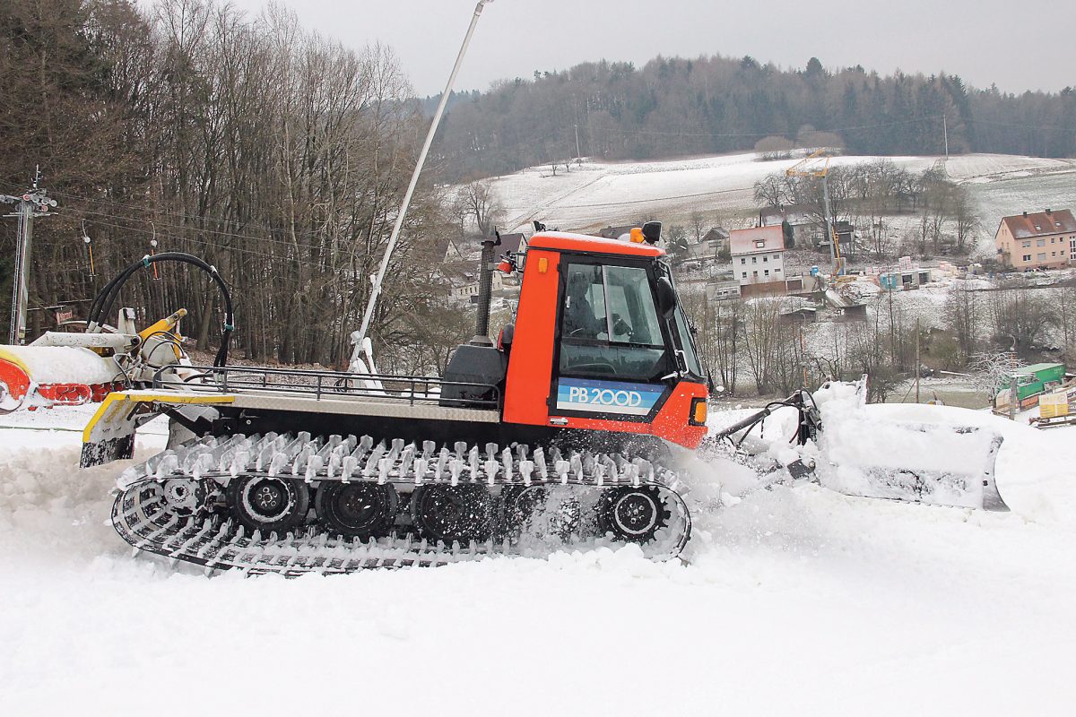 Verantwortlich für den Kunstschnee am Osternoher Hang ist Ronny Kohler aus Haidling. Für den selbstständigen Unternehmer ist es eine Herzensangelegenheit, die Piste mit der Liftspur für den Skibetrieb zu präparieren. Bis in die späten Nachtstunden und am frühen Morgen beobachtet er genau den Temperaturverlauf und passt die zugeführte Wassermenge entsprechend an. „So um 30 Zentimeter müssen liegen, um mit dem Pistenbully darauf fahren zu können, ohne den gefrorenen Wiesenuntergrund aufzureißen. Je kälter es ist, desto mehr Schnee können wir in kurzer Zeit in die Abfahrtsstrecke aufbringen“, sagt der Beschneiungschef, der auch mit der Pistenraupe aufgehäufte Schneemengen verteilt.