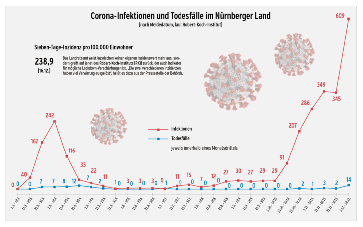 NÜRNBERGER LAND — Im ersten Dezember-Drittel hat die zweite Welle im Nürnberger Land ihren bisherigen Höhepunkt erreicht. Gestern meldete das Landratsamt vier weitere Tote.