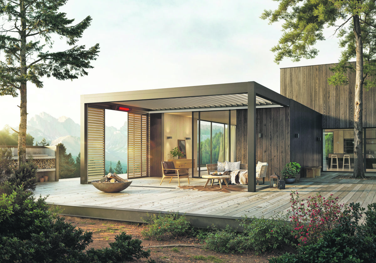 Zusätzliche Elemente wie integrierte ZIP-Markisen, Glas- und Holzelemente oder Design-Heizstrahler erweitern die Nutzungsmöglichkeiten und verwandeln den Outdoor-Bereich in einen komfortablen Lebensraum. Die Steuerung erfolgt dabei bequem per Funk, sodass Licht, Schatten und Temperatur individuell reguliert werden können.