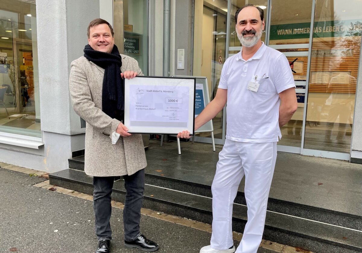 Im Namen des Stadtrates hat Altdorfs hat Altdorfs Bürgermeister Martin Tabor dem Chefarzt des Krankenhauses Altdorf, Dr. Adrian Vizireanu, eine Spende in Höhe von 1000 Euro für den Förderverein des Krankenhauses übergeben.