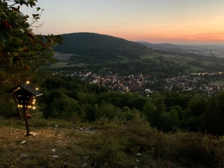 HAPPURG – Seit einiger Zeit sind oberhalb von Happurg Lichter zu erkennen, die aus der Ferne aussehen wie als ob dort eine kleine, beleuchtete Hütte stehen würde. Doch das ist nicht der Fall: Bei den Lichtern handelt es sich um ein neues Denkmal bei der Langenberger Bank oberhalb des Happurger Steinbruchs, genauer gesagt um ein beleuchtetes Kreuz, wie Sonja Wießner weiß.