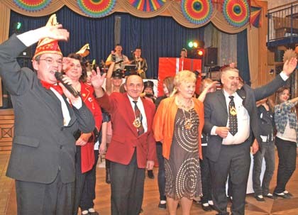 Neben den Gardemädchen war vor allem der Showtanz der vier „Hupfdohlen“, die in raffiniert geschnittenen Kostümen „Candy Man“ Johannes umgarnten, ein Blickfang. Zu einer Faschingsveranstaltung gehört natürlich auch die Verleihung von Orden. Therese Vetter, Walter Söhnlein und der Chef der heimischen Wirte, Peter Bauer, wurden vom Präsidenten der „Närrschbruckia“, Roland Winkler, und seiner Assistenten Sylvia Paulus mit dem Hersbrucker Faschingsorden dekoriert. Agnes Hauck ging wieder mit ihrer Spendeneule durch die Reihen und sammelte knapp 250 Euro für die Lebenshilfe. Zu mitternächtlicher Stunde b gab es dann ein opulentes  Eisbuffet.