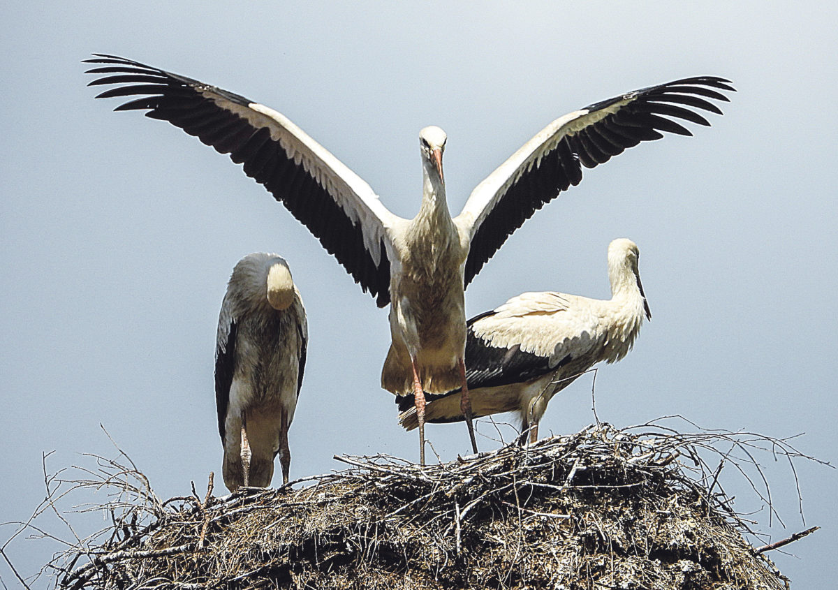 Täglich werden hier Handys gezückt und auf Bildern und Filmen wird festgehalten, wenn die Storcheneltern ausführlich klappern, Futter für ihre Jungen heranschaffen oder, wie in den letzten Tagen, der Nachwuchs die ersten Flugübungen vollführt. Und so gelangt das Leben der Laufer Störche über die sozialen Netzwerke in die ganze Welt.