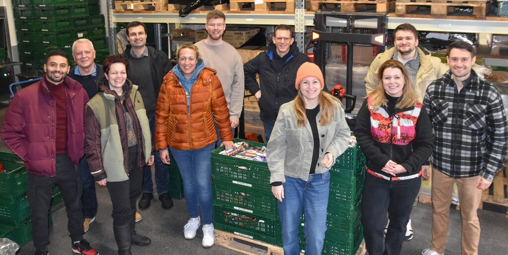 Seine Teams waren daher unter anderem in Tierheimen und Senioreneinrichtungen aktiv, ein Team in der Zentrale der Tafel im Nürnberger Land in Feucht. Angeregt hatte dies Teammitglied Kim Höra, die als stellvertretende Leiterin der Laufer Ausgabestelle selbst bei der Tafel ehrenamtlich tätig ist. Naturgemäß betraf ein Teil der Hilfestellung den EDV-Sektor, wo unter anderem ein Laptop eingerichtet und dessen Software aktualisiert wurde und auch interessante Gespräche rund um den Einsatz von KI im Berufsalltag entstanden. Das Team packte aber auch tatkräftig bei der Kommissionierung und Verteilung der Waren auf die einzelnen Ausgabestellen der Tafel an.