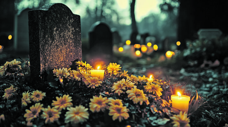 Mit Allerheiligen eng verbunden ist der Tag darauf, Allerseelen (2. November), an dem speziell den Verstorbenen gedacht wird. In vielen Regionen verschwimmen die Bräuche beider Tage, und der Friedhofsbesuch sowie das Schmücken der Gräber der Verstorbenen spielen eine zentrale Rolle. Blumen, insbesondere Chrysanthemen, sowie Kerzen werden auf die Gräber gestellt, um der Toten zu gedenken und ihnen symbolisch Licht auf ihrem Weg zu spenden. Diese Tradition unterstreicht die enge Verbindung von Leben und Tod im christlichen Glauben: Während Allerheiligen die Heiligen ehrt, weist Allerseelen auf die Hoffnung der Gläubigen auf das ewige Leben hin.