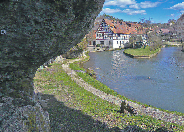 Schon mal da gewesen, und zwar dort, wo steil aufragende Dolomitfelswände die zahm dahinfließende Pegnitz garnieren? Falls ja, dann lohnt sich ein Besuch ein zweites oder gar drittes Mal. Je nach Wasserstand und Jahreszeit gewinnt der Flusspromenaden-Spaziergänger neue Einblicke. Gar zu oft muss er stehen bleiben und den Kopf in den Nacken legen. Ich war x-mal dort und habe keinen Schritt bereut.