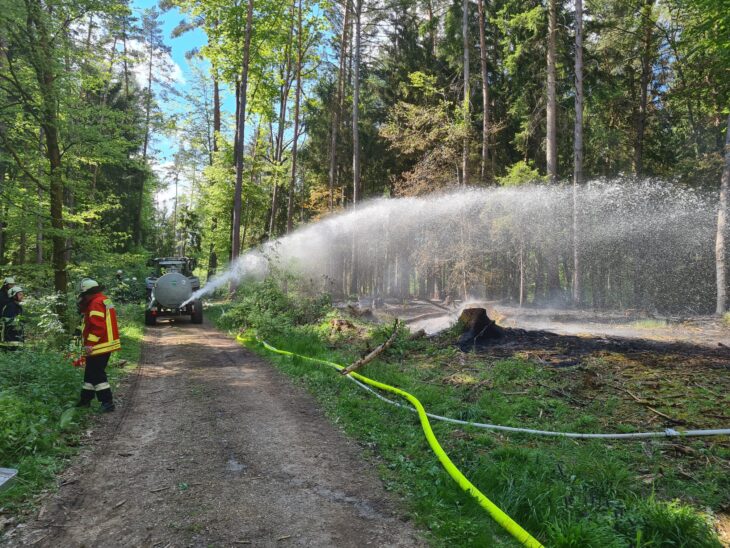 Am 1. Mai kam es dann zu einem größeren Waldbrand bei Unterkrumbach. Dort stand der Wald auf einer Fläche von 2500 Quadratmetern in Flammen. Die Wasserversorgung für die Brandbekämpfung und das langwierige Ablöschen der Glutnester wurde durch Tanklöschfahrzeuge und wasserführende Löschfahrzeuge im Pendelverkehr sichergestellt. Eine wertvolle und unverzichtbare Unterstützung waren dabei auch wieder Landwirte, die mit Güllefässern große Mengen an Wasser zur Brandbekämpfung an die Einsatzstelle brachten. Die Löscharbeiten zogen sich über mehr als fünf Stunden. Im Einsatz waren hier die Feuerwehren Unterkrumbach, Altensittenbach, Aspertshofen, Großviehberg, Hartenstein, Hersbruck, Hohenstadt, Kirchensittenbach, Kleedorf, Lauf, Neuhaus und Oberkrumbach sowie Mitglieder der Kreisbrandinspektion.