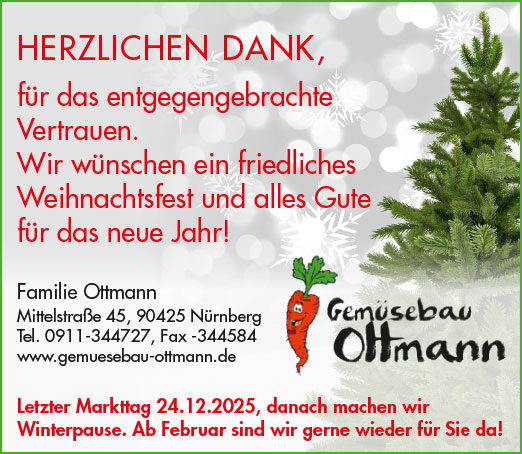 Wir wünschen unseren Leserinnen und Lesern frohe Weihnachten.