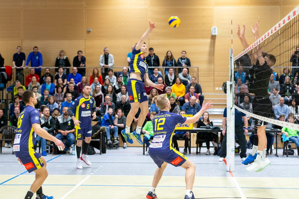 Immerhin gelang es Maric’ Mannschaft in der Halle am Mittelbügweg, den ersten Satz zu gewinnen. Konzentriert traten die Schwaiger von Anfang an auf, angefeuert von 310 Zuschauern. Dass der SVS den Saisonabschluss nach zuvor fünf Niederlagen in Serie versöhnlich gestalten wollte, konnte dem Team niemand absprechen. Mit den Nachwuchskräften Jan Kolakowski, Luca Russelmann und Joshua Schneider, dafür ohne Christian Schwabe und Christian Nowak, ließen sich die Gastgeber auch durch den 4:7-Rückstand zu Satzbeginn nicht beirren. 13:13 hieß es nach elf Minuten, später 18:15 und 22:17. Der erste Durchgang machte den Schwaigern Mut für das restliche Duell.