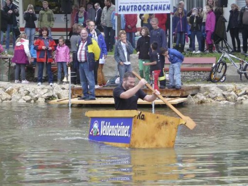 Das Sautrogrennen konnte trotz kühlem Nass von unten und am Ende auch von oben auf seine stattliche Fangemeinde zählen. Nach einigen spannenden Kopf-an-Kopf-Rennen gingen bei den Kindern Michael Schötz (1. Platz), Fabio Hochsam (2. Platz) und Nico Fröhlich (3 Platz) sowie bei den Erwachsenen Stefan Krebs (1. Platz), Norbert Kirsten (2. Platz) und Gerd Thorak (3. Platz) als Sieger hervor und wurden von der Yachtsportgemeinschaft Franken e. V. mit einem hübschen Pokal belohnt.