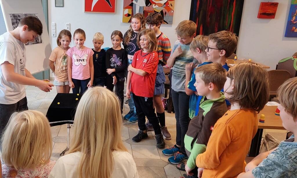 Bereits während des Kurses am Schlossplatz konnten die Zauberlehrlinge Applaus entgegennehmen für erfolgreiche Vorführungen. Mit Sicherheit wurden während der Ferien noch viele Familien und Freunde mit den erlernten Kunststücken „bezaubert“.