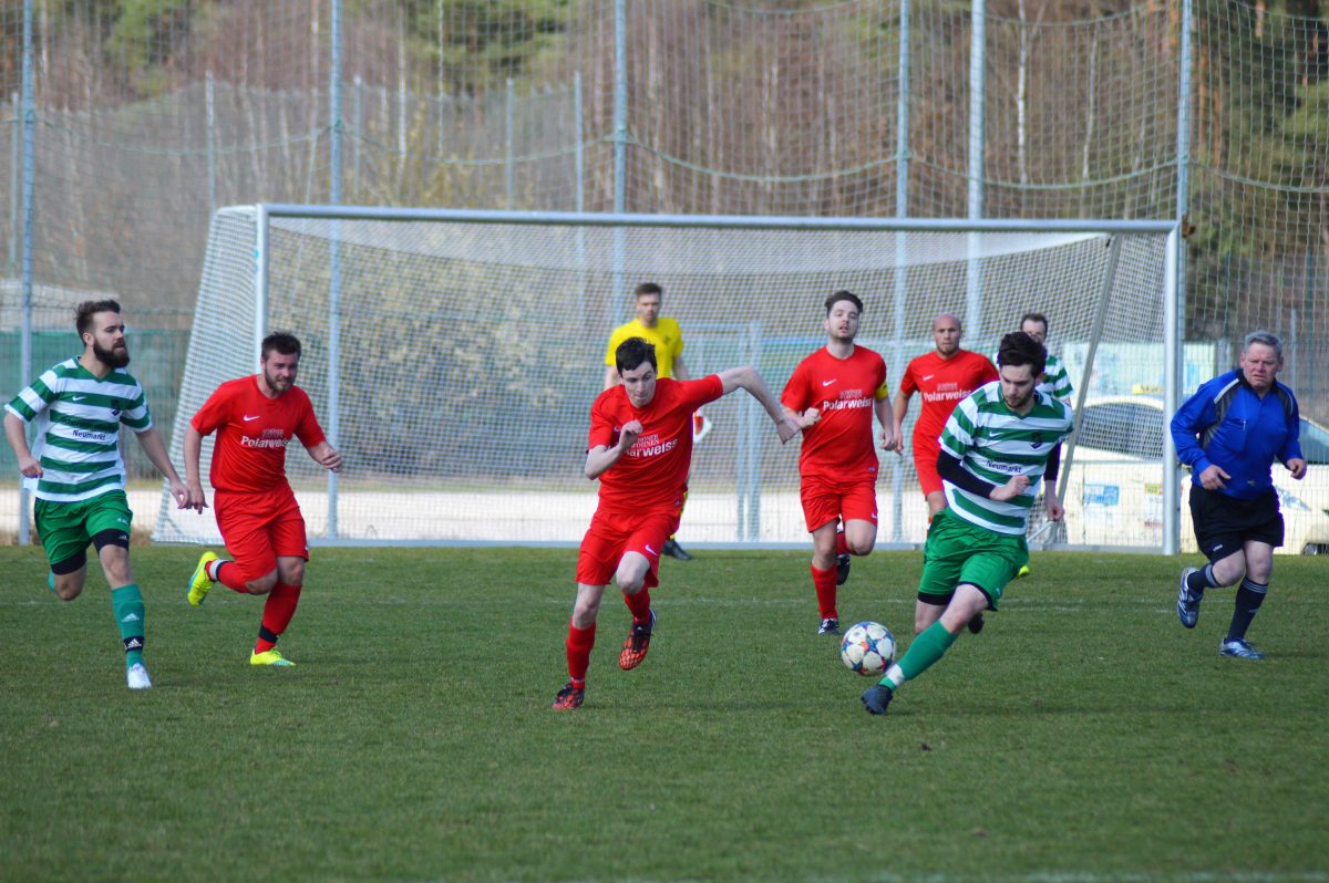 A-Klasse Nord Ost Neumarkt/Jura: SC Eismannsberg – DJK Pilsach 2:3 (1:1) – Im Kellerduell gelang es den Eismannsbergern nicht, mit einem Heimdreier den Anschluss aus der Abstiegszone zu verkürzen. Die Gäste gingen in der 33. Minute nach einem Konter durch Florian Schmitt mit 0:1 in Führung, dezimierten sich aber selbst in der 43. Minute nach einem brutalen Foul an Dominik Pfälzner durch eine Rote Karte für Hannes Schmidt. Der Eismannsberger Goal-Getter musste danach verletzt den Platz verlassen. In der Nachspielzeit der ersten Hälfte gelang David Babescu nach einem langen Einwurf von Jonas Pfälzner noch der 1:1-Ausgleich. Gleich nach Wiederbeginn erhöhte Pilsach durch einen verwandelten Foulelfmeter von Daniel Lehmeier auf 1:2. Nach einer Freistoßflanke gelang Patrick Wild per Kopfball in der 72. Minute der 2:2-Ausgleich. Zehn Minuten vor Schluss sah der Pilsacher Johannes Kaiser die Gelb-Rote Karte, die mit zwei Feldspielern in Unterzahl nur sporadisch vors Eismannsberger Tor kommenden Pilsachern glückt durch Dominik Finger in der 82. Minute der alles entscheidende Siegtreffer zum 2:3.