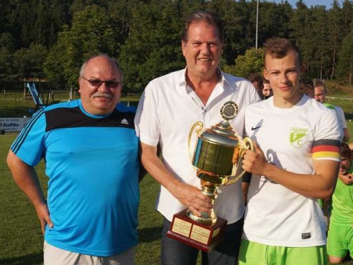 Am Abend spielte zur Unterhaltung Duo Just Friends (Jürgen und Thomas) aus Unterferrieden auf. FC-Kapitän Felix Bernhard nahm unter großem Jubel seiner Mannschaftkameraden noch auf dem Platz aus der Hand von Bürgermeister Heinz Meyer den Wanderpokal in die Hand. Nach dem dreimaligen Gewinn in Folge hat der FC Ezelsdorf im nächsten Jahr die Chance – Ausrichter 2015 ist der TSV Burgthann – mit einem Sieg den Pokal endgültig in seinen Besitz zu bringen.
