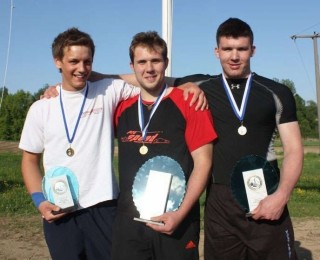 Der Bayernpokal im Eisstockweitschießen in der Klasse U19 geht nach Velden: Nach seinem Sieg vor heimischem Publikum im Vorjahr in der U18 holte sich Weitenjäger Alessandro Kordat (Mitte) vom TSV Velden heuer im niederbayerischen Mitterskirchen im Landkreis Rottal-Inn den Titel in der nächsthöheren Altersklasse. Zusammen mit seinen Teamkollegen Nico und Daniel Ludwig von der SG Franken Sennfeld belegte er zudem in der Mannschaftswertung für den Bezirk V Franken den zweiten Platz. Ohne größere Probleme setzte sich Kordat in der Qualifikationsrunde mit einer Weite von 82,82 Metern als Vierter durch. Nach drei weiteren Siegen traf der junge Veldener Daubenjäger im Finale auf Max Winkler (rechts) vom TSV Peiting. Beide Teilnehmer profitierten vom Ausscheiden des Titelfavoriten Andreas Fischer vom EV Mitterfels, der in der Qualifikation mit 91,68 Metern mit Abstand die größte Weite erzielte, verletzungsbedingt aber bereits in der ersten Runde strauchelte. So lieferten sich die zwei Weitenjäger aus Velden und Peiting einen spannenden Wettbewerb. Winkler führte mit einer Weite von 89,94 Metern nach dem ersten Durchgang mit einem Vorsprung von über zwei Metern vor Kordat, dessen Eisstock nur bei 87,70 Metern landete. Im zweiten Versuch gelang dem heimischen Athleten eine fulminante Steigerung bis auf 90,28 Meter, was gleichzeitig den Titel für den Veldener bedeutete. Dritter wurde Thomas Kohlmann (links) vom SV Stauf mit 86,24 Metern. at/Foto: privat