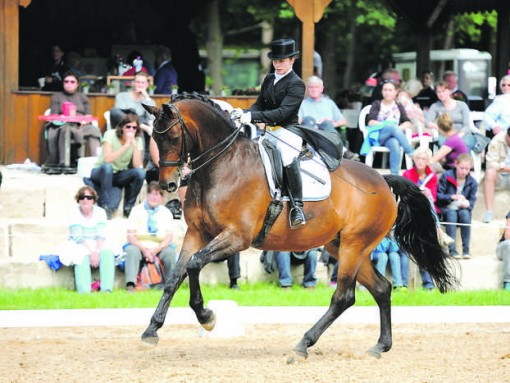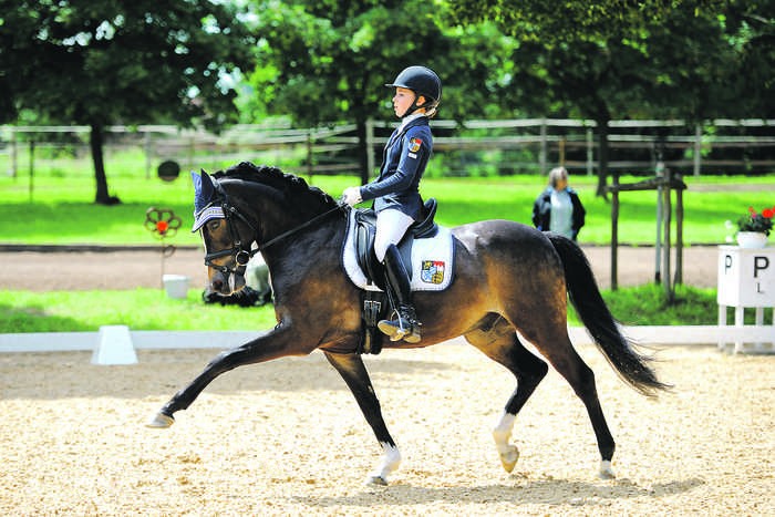 HEUCHLING — Ein voller Erfolg waren die Heuchlinger Dressurtage. Die Teilnehmer, die teilweise über die bayerischen Grenzen hinaus angereist waren, fanden auf der Anlage des Reit- und Fahrvereins Heuchling-Lauf perfekte Bedingungen vor. Es fanden Prüfungen von der Einsteiger- bis zur höchsten Klasse des Dressursports statt. Zahlreichen Zuschauern wurde an drei Tagen ein abwechslungsreiches Programm geboten. Unter anderem konnten die Zuschauer am Sonntag den Reiternachwuchs in fantasievollen Kostümen vom Festzelt aus bewundern. Ebenso fand am Sonntag die Hauptprüfung zu Ehren des verstorbenen Gründungsmitgliedes des Heuchlinger Reitvereins, Fritz Ziegler, der „Fritz Ziegler Gedächtnispreis“, statt. Geritten wurde hier eine Dressurprüfung der Klasse S***, die Franziska Stieglmaier mit „Lukas“ gewann (Foto rechts). Eine besondere Ehre war es für den Heuchlinger Reitverein, dass die Übergabe des Ehrenpreises und des Pokales durch den Sohn des Gründungsmitgliedes, Waldemar Ziegler, sowie die 1. Vorsitzende des bayerischen Reit- und Fahrverbandes, Jacqueline Schmieder, vorgenommen wurde. Aber nicht nur hinter den Kulissen war der Heuchlinger Reitverein tätig. Erfolgreich reitende Mitglieder waren unter anderem Anna-Luca Schmauß mit „Divara“ (5. Platz in einer Dressurprüfung der Klasse E), Alexandra Schmidt mit „Amadeus“ (1x 2. Platz Dressurprüfung Klasse L und 1x 5. Platz Dressurprüfung Klasse L). Kathrin Eitel mit „Sirius Black“ erritt den 4. Platz in einer Dressurprüfung der Klasse A**, Ann-Kathrin Pickl wurde mit dem vereinseigenen Schulpferd „Gucci“ wurde Achte in einem Dressurwettbewerb der Klasse E. „Wir sind überwältigt vom durchweg positiven Feedback aller Teilnehmer und freuen uns schon auf eine Wiederholung im nächsten Jahr“, so Barbara Gerhäuser, 1. Vorsitzende des Heuchlinger Reitvereins. Das Foto links zeigt Jana Lang auf „Nur für dich“, Siegerin der Pony-Dressurprüfung Klasse L, einer Kür.