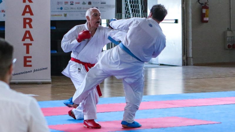 Mit schnellen Faustangriffen kam Lothar Fink (links) in Turin zum Erfolg in den einzelnen Begegnungen. | Foto: Brigitte Kraußer2019/08/Karate.jpg