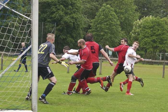 In den zweiten 45 Minuten war die Mannschaft von Torwart Benny Grönke dann von Minute zu Minute mehr unterlegen. Alex Vöge (47./76.) und dazwischen Thorsten Eckstein (67.) erhöhten gegen den nachlassenden B-Klassisten, der ohne Auswechselspieler angetreten war und nach einer Verletzung von Piero Nicolletti die Partie mit zehn Mann zu Ende spielen musste, nur mehr ein Spielball der Rascher Elf, die hauptsächlich aus Spielern der zweiten Mannschaft bestand.