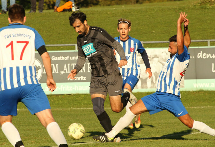 Im zweiten Abschnitt trauten sich beide mehr nach vorne. In der 68. Minute ging der FSV Schönberg über einen langen Ball von Tim Brauner durch Manuel Förtsch in Führung. Die Platzherren hatten nach einem vermeintlichen Foul in der gegnerischen Hälfte vergeblich auf den Pfiff des Unparteiischen gewartet. Eine sehr gute Spielkombination über die linke Seite folgte und das runde Leder kam zu Max Mederer. Der schoss aus 18 Metern eiskalt in den gegnerischen Kasten. In der letzten Viertelstunde wollten es die beiden Mannschaften dann nochmals wissen. In der 81. wehrte Jens Quenzler einen Ball auf der Linie ab. Die Gäste kamen aber sofort nochmals und machten das 1:2. Trotzdem gab die Spielgemeinschaft noch nicht auf und spielte munter nach vorne. Einen Freistoß spielte der eingewechselte Ersin Akkaya in Minute 87 auf Aumeier. Der glich auf 2:2 aus; ein für beide Seiten verdientes Resultat.