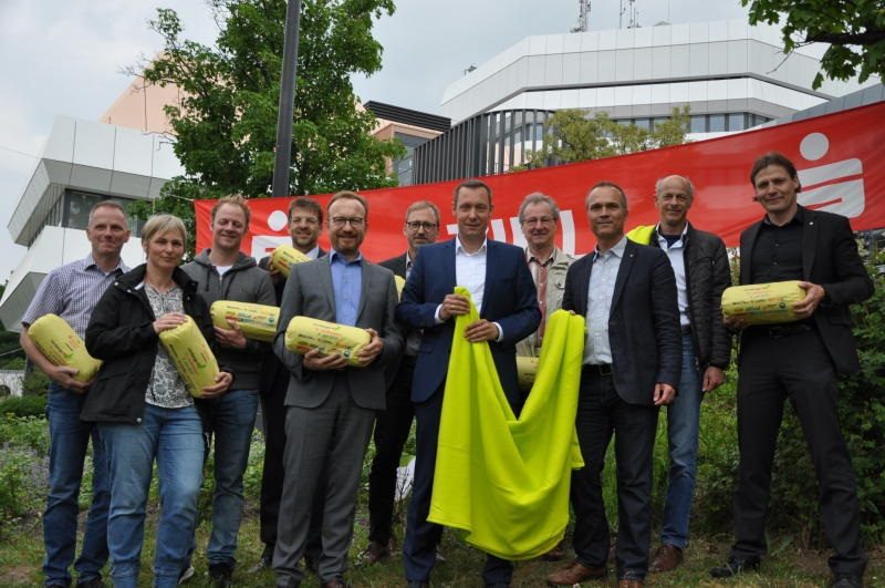 Vor kurzem hat „Streckenchef“ Gerhard Burkhardt mit seinen Helfern die zehn Etappen zwischen Heldmannsberg und Velden markiert, nun stellten Landrat Armin Kroder (5. v. rechts) und Vertreter der 13 Landkreislauf-Sponsoren, Sparkasse, Medienverbund Nürnberger Land, Kaiser-Bräu, Art di Como, H. u. E. Büschel, Felßner Haustechnik, Abraham CNC-Bearbeitung, Bolta-Werke, Bisping & Bisping, Getränke Ziegler, ASB, Rotes Kreuz und der Verein Charity Cycling, das diesjährige Geschenk an die Teilnehmer vor – eine kuschelige Fleecedecke, die sich laut Organisator Frank Richartz (3. v. rechts) auch bestens dazu eignet, sich darin nach einem anstrengenden Lauf einzuhüllen.