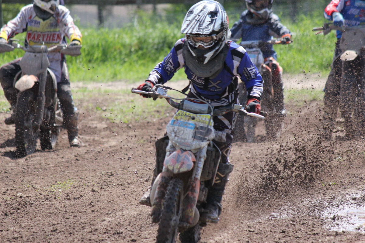 Und da hatte er beim verspäteten Saisonbeginn genug zu tun: Der lange Winter und dann der viele Regen verwandelten die Pisten in Matschlandschaften. „Das geht aufs Material“, sagt Carsten – und auf den Menschen: „Man rutscht fast nur“, erzählt der junge Motorradsportler. Mit Matsch überdeckte Strecke und Brille, Blindflug war oftmals angesagt. Aber wie weiß Leo da, wo er fahren muss? „Ich schaue bei der Besichtigung auf tiefe Löcher, große Steine und Absprungkanten.“