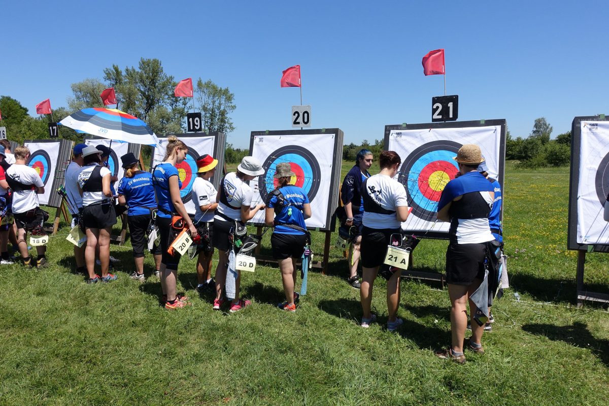 Eine beachtliche Leistung war auch die körperliche Anstrengung für alle teilnehmenden Schützen. Am Sonntag kletterte das Thermometer noch schneller auf die 40 Grad Marke als am Vortag. Sonnenschirm, Kopfbedeckung und ein nasses Handtuch im Nacken waren die Grundausstattung. Anja Merkel konnte in der Klasse „Damen Compound“ nicht an ihre sonstigen Ergebnisse anknüpfen und erreichte mit 627 Ringen den 9. Platz. So blieben ihr das Finale und drei weitere heiße Stunden auf dem Bogenplatz erspart.