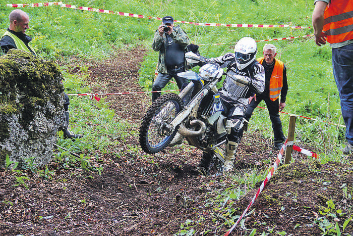 Die Starts wurden durch Heinz Wolf vorgenommen, mal als Le-Mans-Start – hier waren die Fahrer etwa 15 Meter von ihren Maschinen entfernt – mal mit dem Fahrer vor dem Motorrad stehend. Einige schwierige Teilstücke hatten es richtig in sich. Über Wurzelwerk hinweg, steil nach oben, um einen Felsbrocken herum – nicht alle Fahrer schafften diese Passage ohne Hilfe durch die Streckenposten.