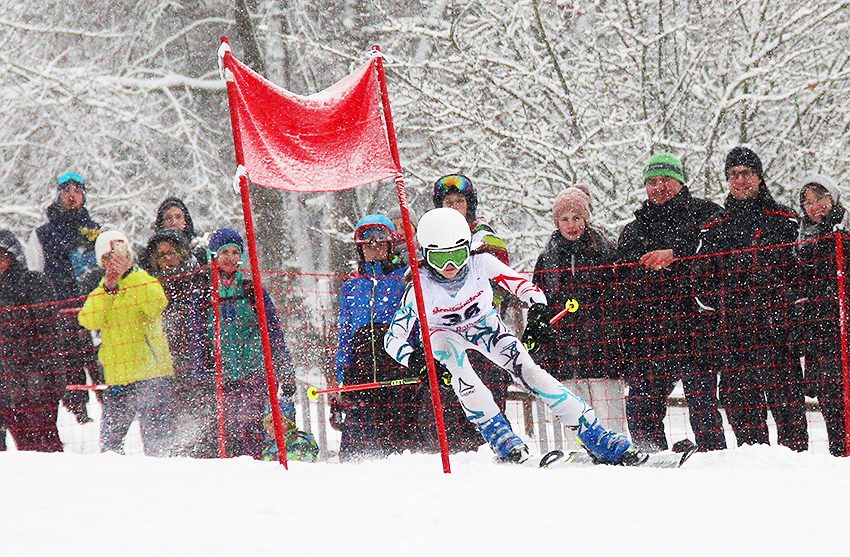 Wegen der stetigen Schneeschauer mit dem anfänglichen Wind fanden sich allerdings nur rund 50 Zuschauer ein, um den Skisport-Nachwuchs anzufeuern. Die Piste war gut präpariert und bevor der zweite Lauf startete, fuhr Streckenposten Philipp Gradl im Schneepflug nochmals die Rennstrecke ab, um Unebenheiten zu glätten. Natürlich gab es auch einige Kinder, die beim Abfahren ein Tor übersehen hatten; ein paar glimpfliche verlaufene Stürze waren ebenso zu verzeichnen, was der Stimmung aber keinen Abbruch tat.