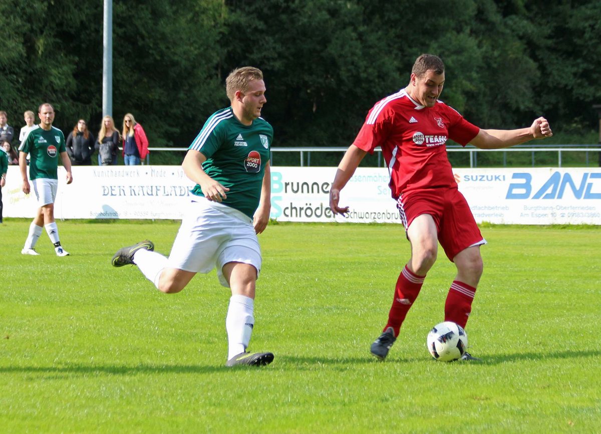 B-Klasse Ost: TSV Burgthann II – SV Lauterhofen II 2:4 (1:1) – Zweites Heimspiel, zweite Niederlage. So lautet die verheerende Bilanz der Burgthanner Reserve. Den besseren Start erwischten dennoch die Hausherren. Bereits nach fünf Minuten konnten die Burgthanner durch Matthias Harbauer in Führung gehen. Die Feldüberlegenheit konnten die Schwarz-Gelben im weiteren Verlauf der ersten Hälfte in nichts Zählbares ummünzen. Lauterhofen kam immer besser ins Spiel und konnte Torchancen kreieren. Fünf Minuten vor der Halbzeit nutzten diese dann eine Lücke in der Burgthanner Verteidigung und Markus Hottner konnte zum 1:1 ausgleichen. Den besseren Start in die zweite Hälfte hatten die Gäste. Mit einem Doppelschlag durch Thomas Moosburger und wiederum Markus Hottner in der 56. und 59. Minute ging der SVL in Führung und konnte diese auch noch ausbauen. Burgthanns Anrennen verhalf ihnen nur noch zum Anschlusstreffer in der 69. Minute durch Jens Rubbel. Die Chancen zum Ausgleich waren vorhanden jedoch führten diese nicht zum gewünschten Erfolg. Mit dem Schlusspfiff konnte Lukas Leybold noch auf 2:4 erhöhen.