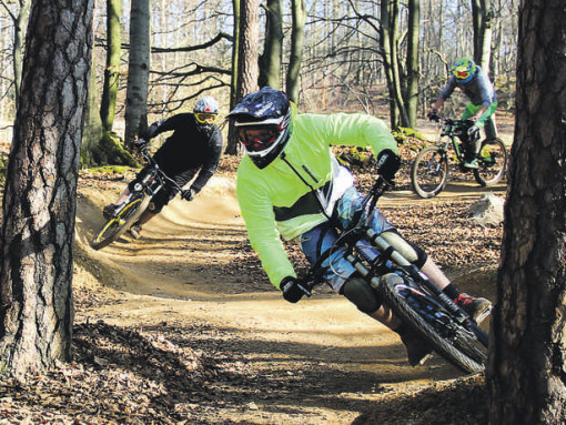 OSTERNOHE — Seit dem Wochenende ist der Osternoher Bikepark wieder geöffnet. Damit ist der Schloßberg wieder in der Hand der Mountainbiker; heimische Brettlfans wie Skilehrer Roland Falkner hingegen verstauten endgültig die Skiausrüstung. Die Osternoher Downhillstrecke wurde laut Auskunft der Betreibergesellschaft von oben bis unten komplett überholt und neu ausgeformt, im Mittelteil wurde außerdem die Streckenführung geringfügig geändert. Alle anderen Strecken und Hindernisse wurden kontrolliert und ausgebessert. Der Ansturm der Biker aus dem weiten Umkreis war gewaltig. Tim Glaßner und Bojan Hozian etwa, beide aus Ingolstadt, waren bereits am Samstag angereist. Die beiden Hobbyfahrer sind froh, endlich wieder ihren Sport ausüben zu können, „die Freude läßt sich gar nicht in Worte fassen“, beschreibt Hozian sein Glücksgefühl. Bei bestem Sonnenscheinwetter warteten noch viele weitere Biker auf ihren ersten „Ritt“ den Schloßberg hinunter über Hindernisse und durch enge Kurven (wie auf den Bildern ), wenngleich die Temperatur im Wald nur im einstelligen Bereich lag und so mancher schon bald recht kalte Finger hatte. Fotos: U. Schuster