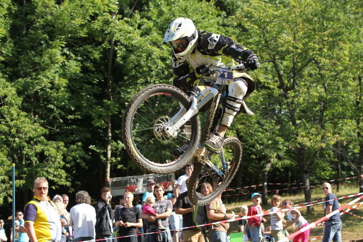 Die Tagesbestzeit fuhr jedoch mit 1:35.909 Erik Irmisch aus dem sächsischen Lößnitz ein. Dies war nicht ganz überraschend, denn der 24-Jährige ist seit Jahren auch auf internationalen Rennen unterwegs und ist deshalb ein erfahrener Downhill-Fahrer. Doch auch der neue Bayerische Meister Felix Wunderlich aus München kam gerade mit einem 54. Platz von der Downhill-Weltmeisterschaft im österreichischen Leogang zurück und wurde bereits im Vorfeld als der Favorit auf den Meistertitel gehandelt.