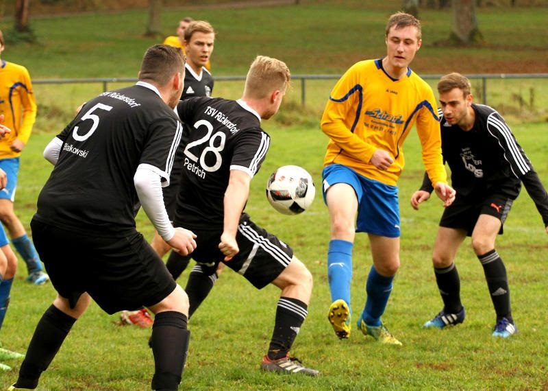 In den ersten 40 Minuten waren die Platzherren die aktivere Elf. Doch mehr als einige Eckbälle sprangen nicht heraus. Besser machten es die Rückersdorfer. Der aufgerückte Max Raths markierte kurz vor dem Seitenwechsel das 0:1. Die Antwort der Spielgemeinschaft kam noch vor der Pause durch den Ausgleich von Nico Rösel. Nach Wiederanpfiff machten die Gastgeber sofort Druck, scheiterten aber trotz einiger Chancen im Abschluss. Eine Vorentscheidung fiel in der 55. Minute. Verteidiger Kevin Penkwitz, schon mit Gelb vorbelastet, hielt seinen Gegenspieler am Trikot fest und sah die Ampelkarte. Fünf Minuten später tankte sich Pascal Vahldiek rechts im Strafraum der Rückersdorfer bis fast zur Auslinie durch. Seinen genauen Pass in den Rücken der Abwehr brauchte Christopher Beck nurmehr ins TSV-Gehäuse zu schieben. Rückersdorf versuchte nun zumindest, die Niederlage abzuwenden. Die beste Chance ergab sich aus einer langen Vorlage, die ein Stürmer über den herauseilenden Keeper Michael Zagel köpfte. Der Rückersdorfer brachte aber nicht genug Druck auf den Ball. Nico Rösel sorgte für die Entscheidung zugunsten der Spielgemeinschaft: Sein direkter Freistoß prallte von der Rückersdorfer Mauer unhaltbar für Torwart Fisnik Deva, der bereits in die andere Ecke unterwegs war, zum 3:1 in den Kasten der Gäste.