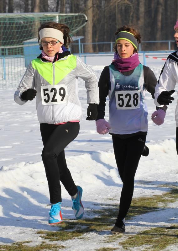 Beide setzten sich bei eisigen Temperaturen und einer sehr abwechslungsreichen Strecke sofort an die Spitze. Die letzte Verfolgerin vom LAC Quelle Fürth wurde nach einer Passage über Stock und Stein abgeschüttelt. Kristin Krug überquerte als Erste in 7.45 Minuten den Zielstrich, Theresa Sörgel kam zwei Sekunden später an. Jana Löhner komplettierte die Mannschaft des LAV Hersbruck, die den Vizetitel hinter den Fürtherinnen errang.