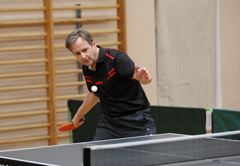 Routinier Siegfried Lontke ist ein zuverlässiger Punktesammler im Team des TV 61 Hersbruck und steuerte im Spitzenspiel gegen die Reserve des SC 1904 Nürnberg (9:3) sowohl einen Punkt im Einzel als auch im Doppel bei (zusammen mit Armin Tauber).