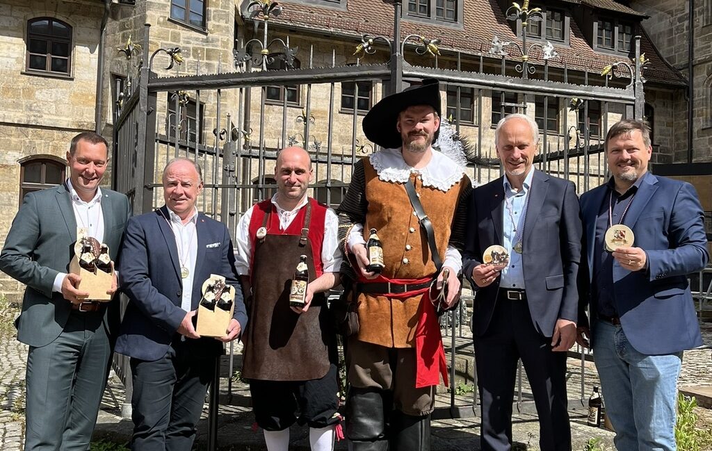 Der Wallenstein-Festspielverein bedankte sich für die Zuwendung und überreichte den Vertretern von Sparkasse und Stiftung im Beisein von Landrat Armin Kroder ein Probierpaket des Festspielbiers. „Wir sind froh über die großartige Unterstützung der Zukunfts- und Kulturstiftung“, sagte Vereinsvorsitzender Jan Andree und fügte hinzu: „Ohne verlässliche Partner und Großspenden wie diese wären die Festspiele für uns schlicht nicht umsetzbar.“ Auch Bürgermeister Martin Tabor lobte das Engagement und verlieh allen Festspiel-Unterstützern als Auszeichnung für ihre Verdienste eine symbolische Wallenstein-Medaille.