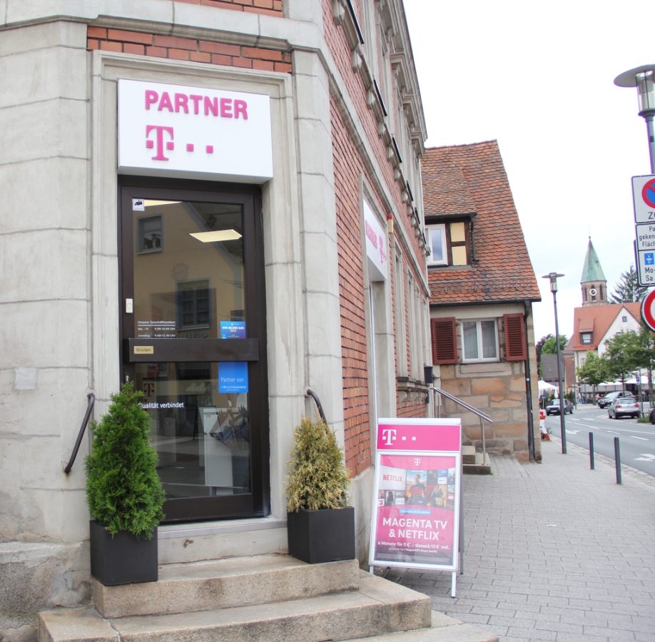 Die Täter schlugen eine Scheibe der Eingangstür ein. | Foto: Fabian Schell2023/07/Telekom-Shop-Feucht.jpeg