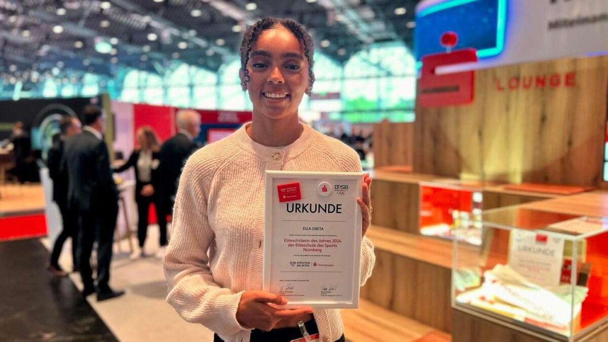 Dafür erhielt sie jetzt von Matthias Everding, dem Vorstandsvorsitzenden der Sparkasse Nürnberg, auf dem Deutschen Sparkassentag die Auszeichnung zur „Eliteschülerin des Sports in Nürnberg“ überreicht. Neben der Urkunde gab es die Einladung zu einem Workshop 2026 mit allen anderen Eliteschülern des Sports. „Die Eliteschulen des Sports liefern die olympischen und paralympischen Medaillengewinner von morgen. Aber sie geben ihren Schülern auch einen Plan B, wenn es mit dem Leistungssport nicht so klappt wie gewünscht. Ella hat dieses duale System perfekt für sich genutzt. Dazu kann man ihr nur gratulieren“, zeigt sich Everding beeindruckt.