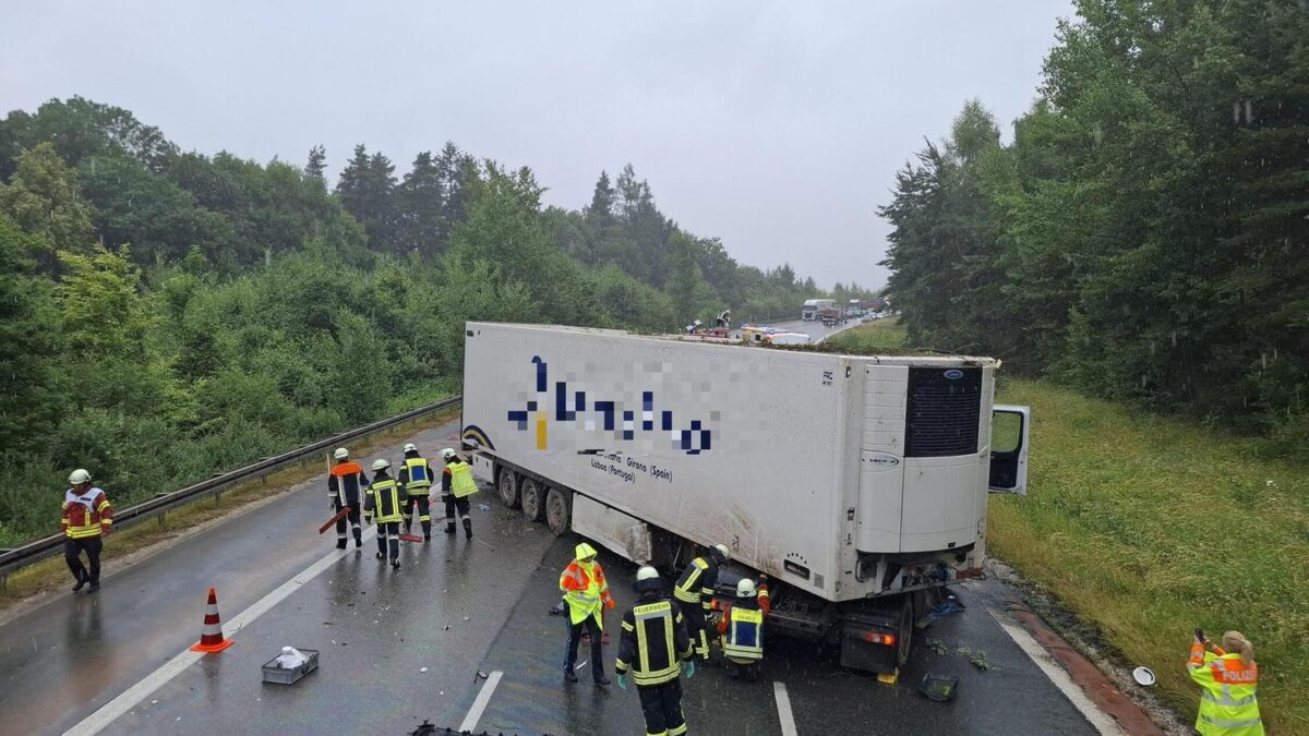 SCHNAITTACH – An der Hienbergabfahrt auf der A9 bei Schnaittach in Fahrtrichtung München ist ein Lkw am Freitag nach einem Unfall quer über alle Fahrspuren zum Stehen gekommen. Der Verkehr wurde über den Standstreifen geleitet.