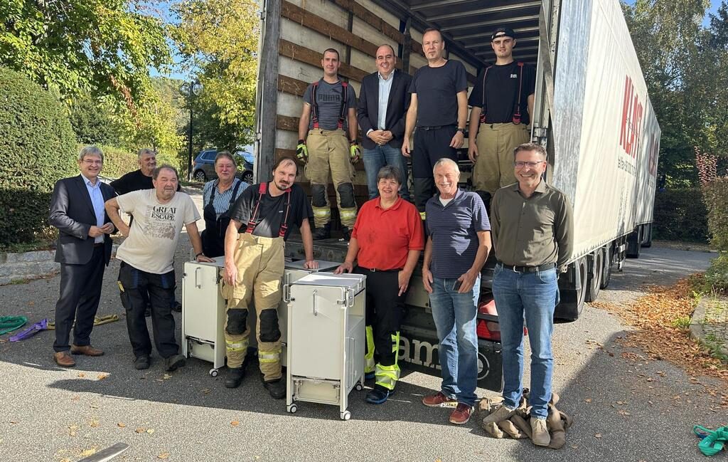 Wichtige Hilfe leistete die Freiwillige Feuerwehr Hersbruck: Kommandant Armin Steinbauer und acht seiner Kameraden brachten die Betten und die dazugehörigen Nachtkästchen ins ehemalige Hersbrucker Krankenhaus – und ließen sich dabei auch nicht davon ausbremsen, dass nur wenige der sperrigen Liegen auf ihren Versorgungs-Lkw passten. Kurzerhand liehen sie sich einen zweiten Laster aus.