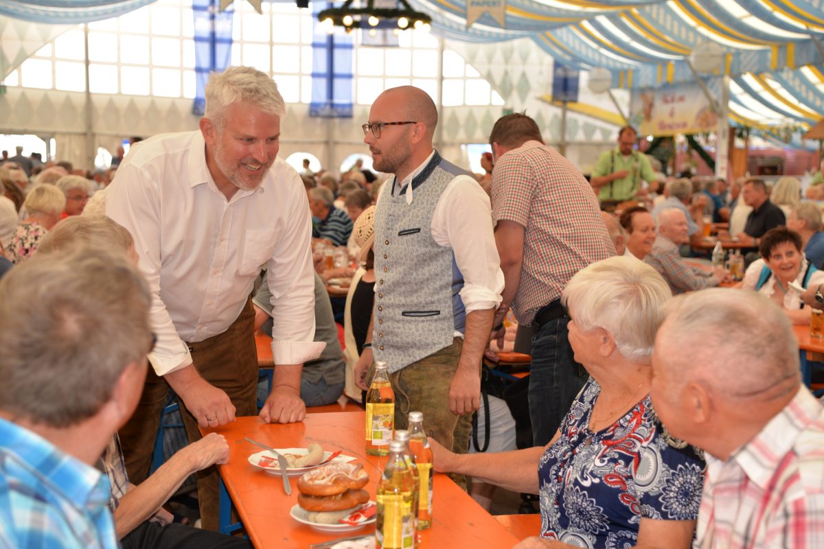 Am Kirchweihdienstag hat die Stadt Lauf wieder die Senioren zum Frühschoppen eingeladen. Heuer erstmals schon am Vormittag. Das Angebot wurde sehr gut angenommen. Als Bürgermeister Thomas Lang die Gäste begrüßte, war das Zelt schon gut gefüllt.