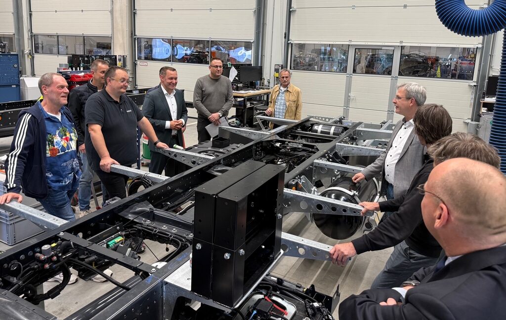 Matthias Meier, der gemeinsam mit seinem Bruder Alexander die Geschäftsführung übernommen hat, und Stephan Thieme von der Geschäftsleitung begrüßten die Delegation und führten sie durchs neue Werk, in dem Fahrgestelle von Mercedes und IVECO für Reisemobile der führenden Hersteller umgebaut, verstärkt und verlängert werden. „Die eigene Entwicklungsabteilung konnte in den letzten Jahren mit Produktinnovationen diverse Sonderlösungen für Kunden und exklusive Nischenprodukte hervorbringen, mit denen man sich deutlich positionieren und die souveräne Stellung in der Branche festigen konnte. Ein weiteres und noch ausbaufähiges Geschäftsmodell sieht man im Ausbau und Umbau von Sonderfahrzeugen“, erläuterte Geschäftsführer Matthias Meier.