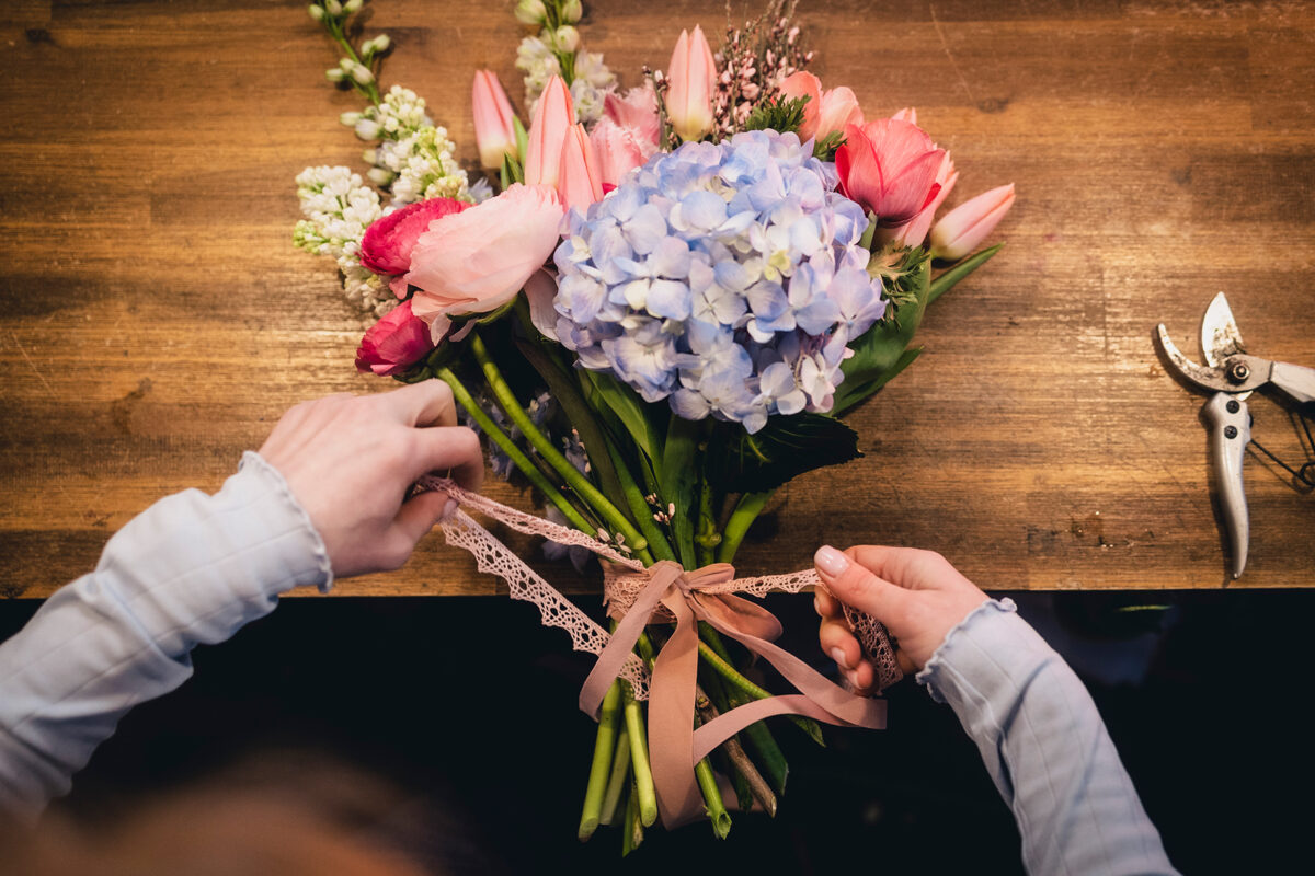 Für das kreative Binden vom Blumenstrauß bekommen Floristinnen jetzt mehr Geld. Darauf hat die Floristik-Gewerkschaft IG BAU hingewiesen. | Foto: IG BAU/Tobias Seifert2024/08/Blumenstrauss-frisch-gebunden.jpg