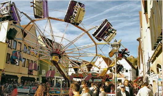 In der historischen Altstadt, rund um das Rathaus, warten am Samstag, 18. Oktober, von 10 bis 20 Uhr, am Sonntag, 19. Oktober, von 12 bis 20 Uhr und am Montag, 20. Oktober, von 10 bis circa 20 Uhr zahlreiche Attraktionen auf die Besucher. Ein Vergnügungspark mit Karussells für größere und kleinere Kinder, Fahrgeschäften, einem Basketball-Spiel und verschiedenen Süßwaren- und Imbissständen lädt Jung und Alt zum Mitmachen und Staunen ein. Liebhaber von Schnelligkeit und Höhenflügen kommen beim „Golden Star“ auf ihre Kosten. An den vielen Ständen werden typische Kirchweih-Spezialitäten wie gebrannte Mandeln, Lebkuchenherzen und herzhafte Snacks angeboten.